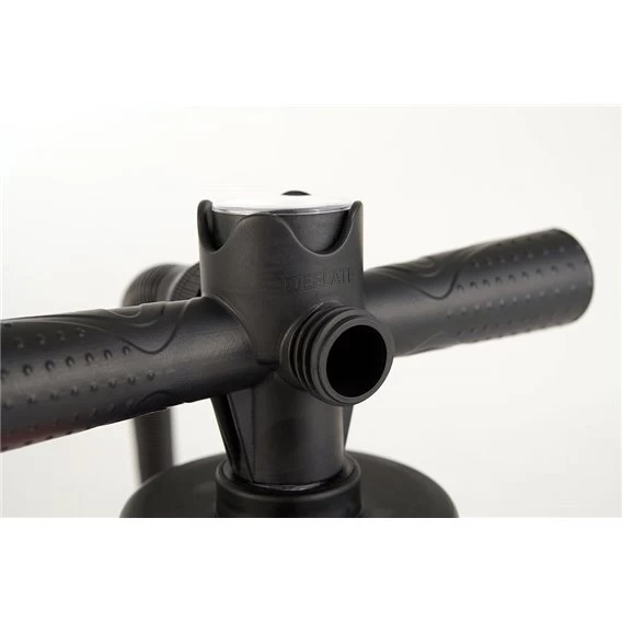 - Double Action: Pump beim Herunterdrücken und beim Hochziehen des Kolbens kontinuierlich Luft ins Boot