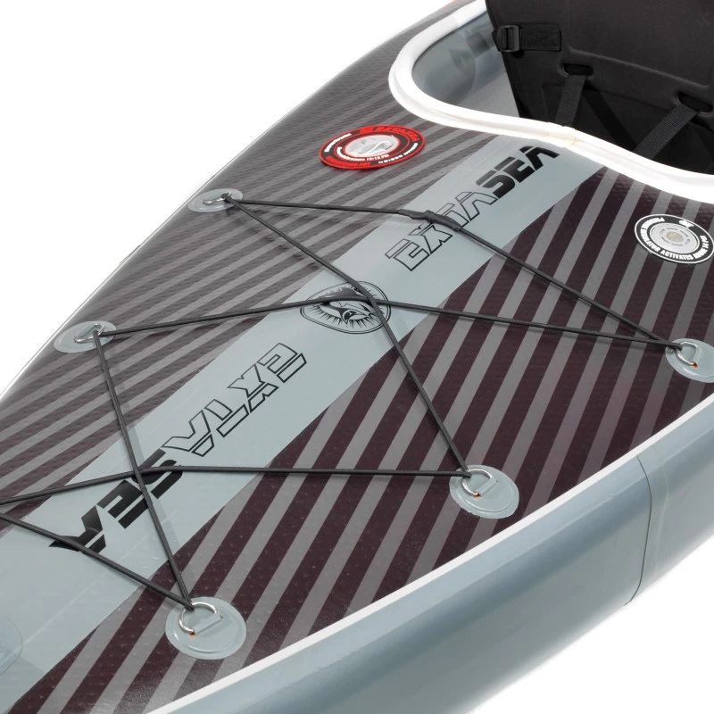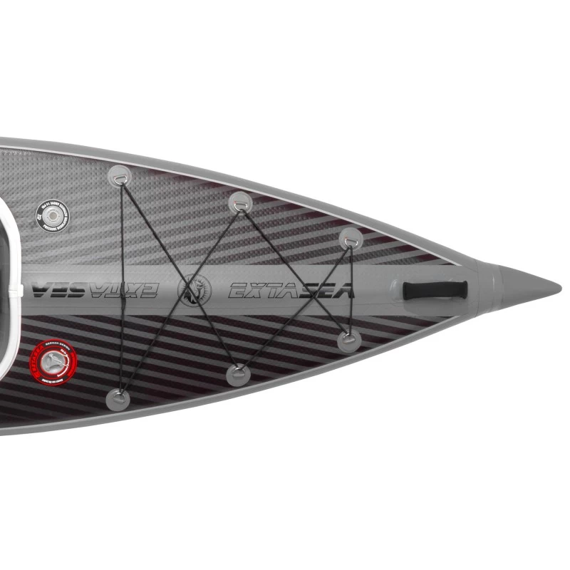 Die Drop Stitch Technologie macht es möglich: Seiten, Deck und Bodenkammer des Kajaks wurden im Drop-Stitch Verfahren gefertigt. Das Kajak ist mit einem höheren Betriebsdruck aufblasbar, besonders verwindungssteif und punktet mit einer sicheren Wasserlage. Durch den festen Drop Stitch Boden ist es ohne Probleme möglich, im Kajak zu stehen und auf dem Wasser die schnellen Fahreigenschaften, die denen eines Kajaks aus Feststoff ähneln, zu genießen.