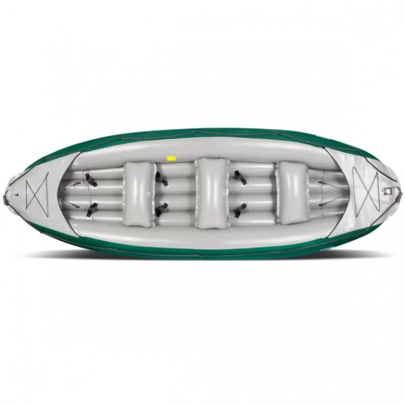 Das Ontario 450 S ist eine längere Version des bewährten Ontario 420. Ausgestattet ist es, zusätzlich zum Ontario 420, mit einem Selbstlezendem Boden und bietet mehr Platz für Gepäck. Das Boot eignet sich gut für Flusswanderungen mit der ganzen Familie kann aber auch als Wildwasserboot bis zur Stufe 3 genutzt werden. Sie werden überrascht sein, wie schnell und wendig sich das Ontario 450 S auf ruhigem Wasser paddeln lässt. Es ist zudem das schnellste Boot aus der Gumotex Produktion für eine so große Personenanzahl. Durch den Selbstlenzenden Boden fließt das Wasser, welches ins Boot gelangt, durch die Öffnungen im Heck wieder nach draußen.